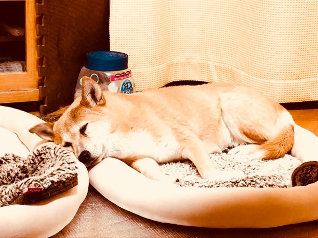 お薬入りの御飯をパクパク食べてくれまして、落ち着かない時間を過ごしてからの お昼寝タイムへ。