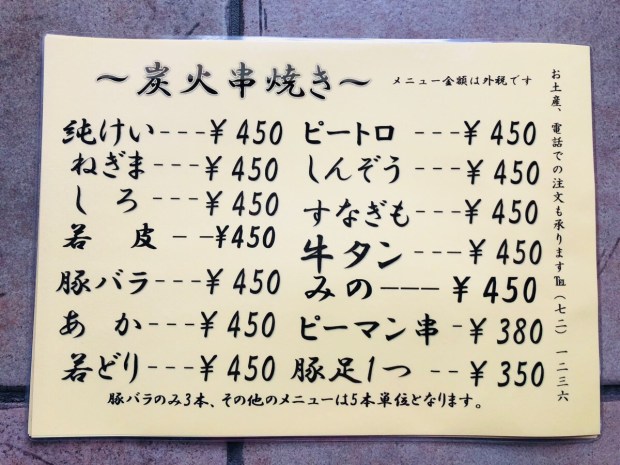 焼き鳥メニューも ちょいも変わりまして(≧∀≦)