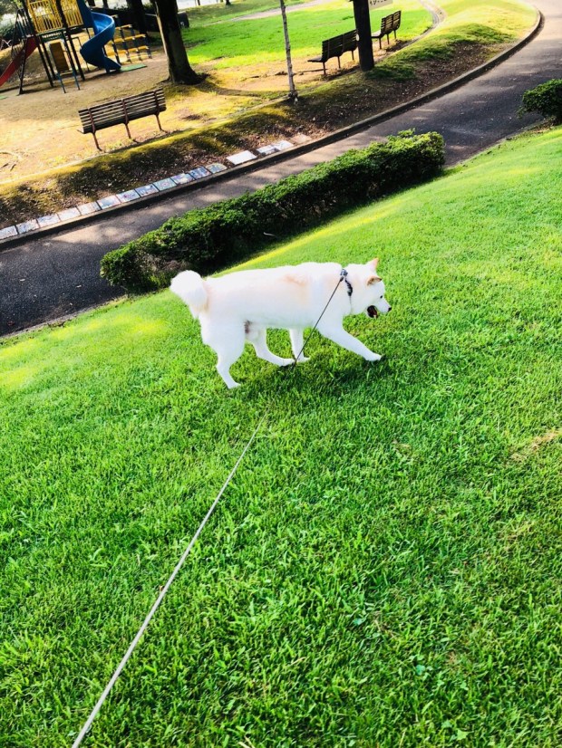 午後の散歩時には、外気温が35℃になってしまい。。。