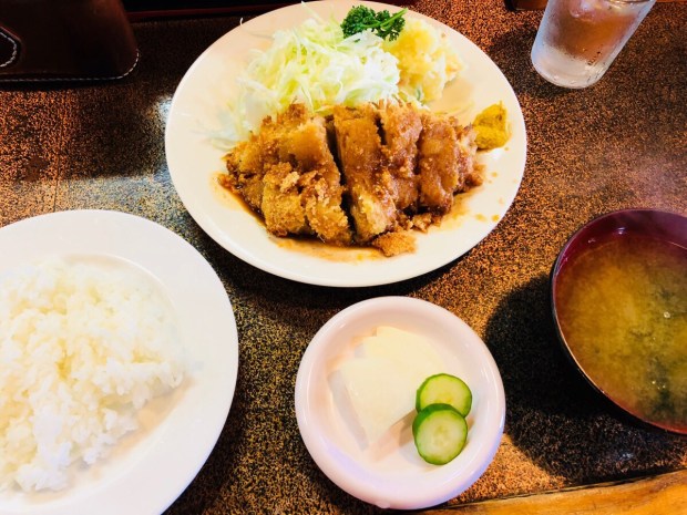 ランチは、週末を乗り切る為の パワーランチ、【美延】さんで チキンカツランチの半ライス🍚