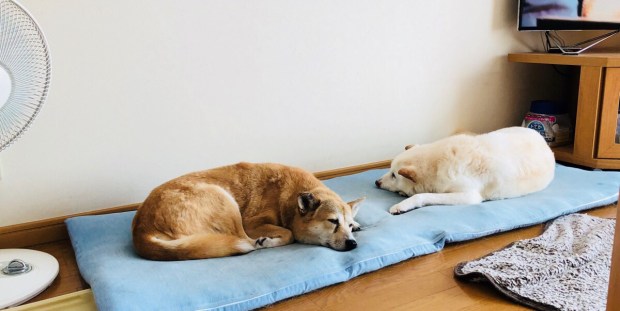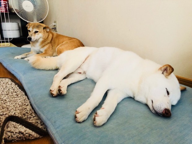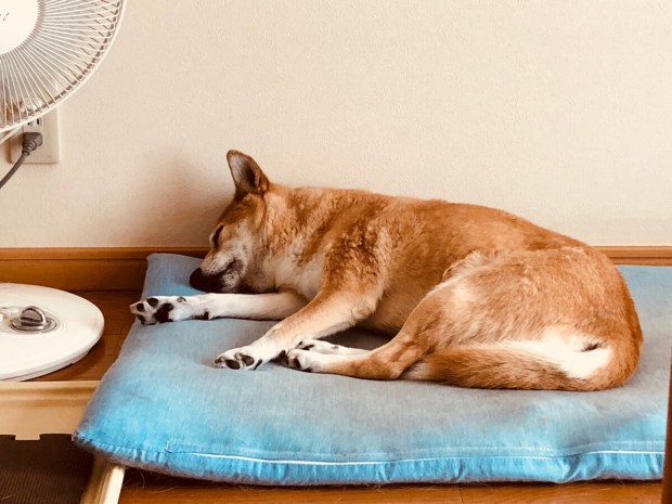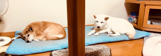 暑いのもありましたので、無理に起こさず 午後の散歩を 夕方の散歩に変更しました(^。^)