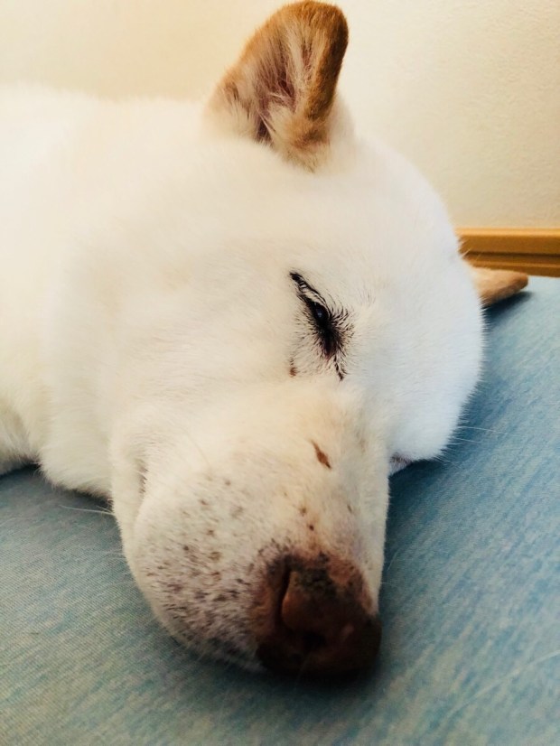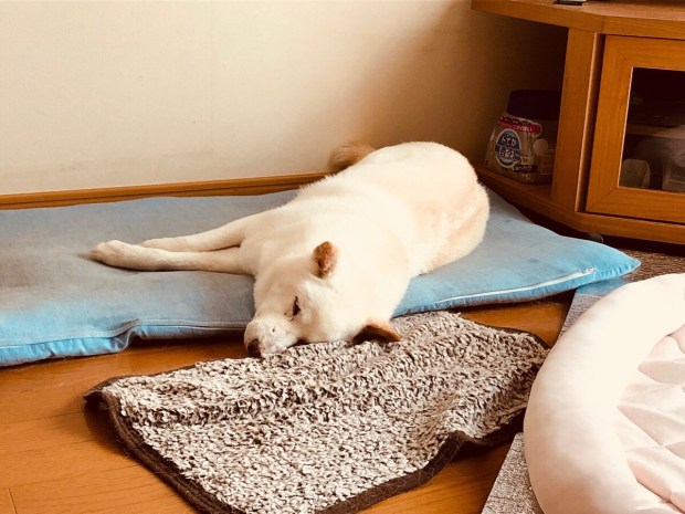 第2日曜日の朝、早朝4時に起床しまして、リビングへ 静かに行ってみますと、グッチ君 まだ爆睡(≧∀≦)