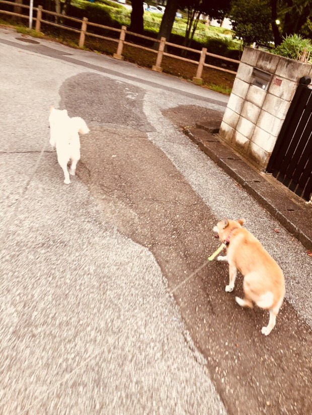 サッとシッコしたら、早よ帰るよー!と 前に出て 早歩きヽ( ̄д ̄;)ノ=3=3=3