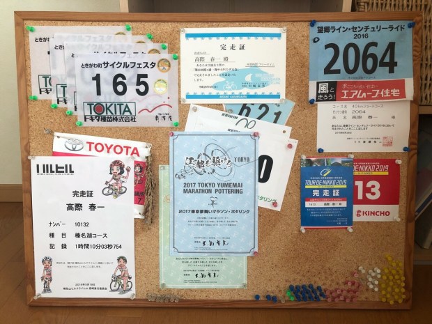 お家のチャリスペースの完走証に 今回の ツールド日光の物が足されました❗️