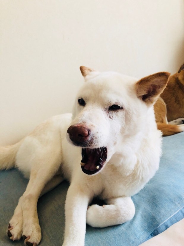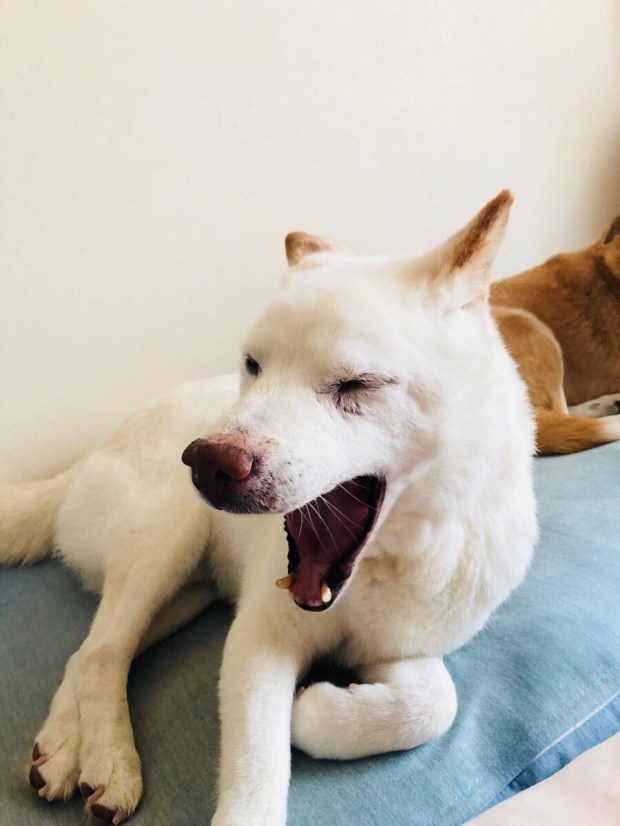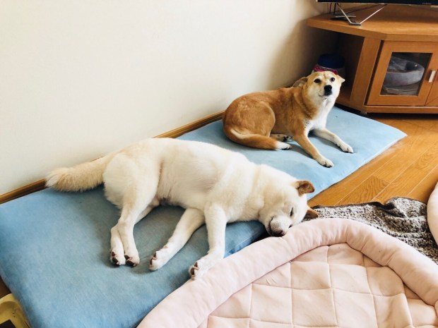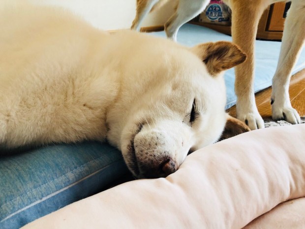 午後の お散歩のため、帰宅しますと、お殿様が それはそれは気持ち良さそうに爆睡こいてまして(爆笑)
