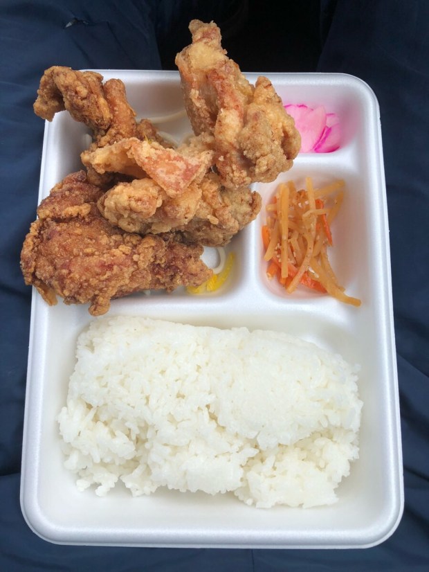 お昼ご飯は、2度目ましての 唐揚げ弁当(o^^o)