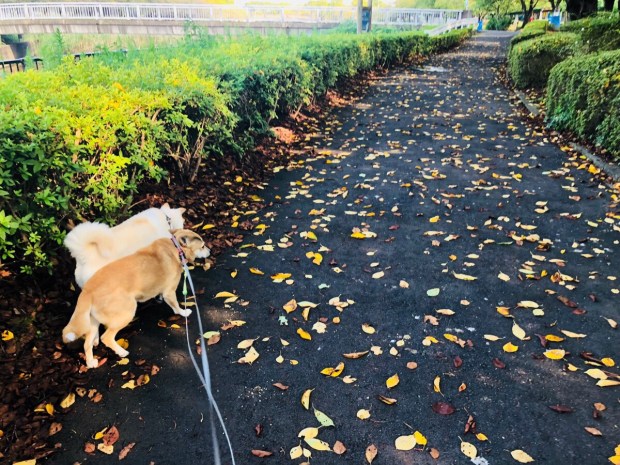 気温は30℃近くありましたが、道路には 落ち葉が多く落ちていまして、写真では 秋な感じ♪( ´θ`)ノ