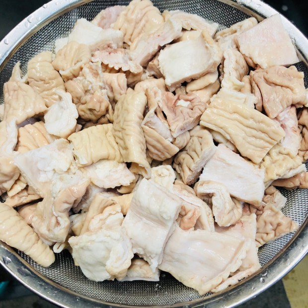特製もつ煮用の テッポウを掃除しての 下準備だったりー。