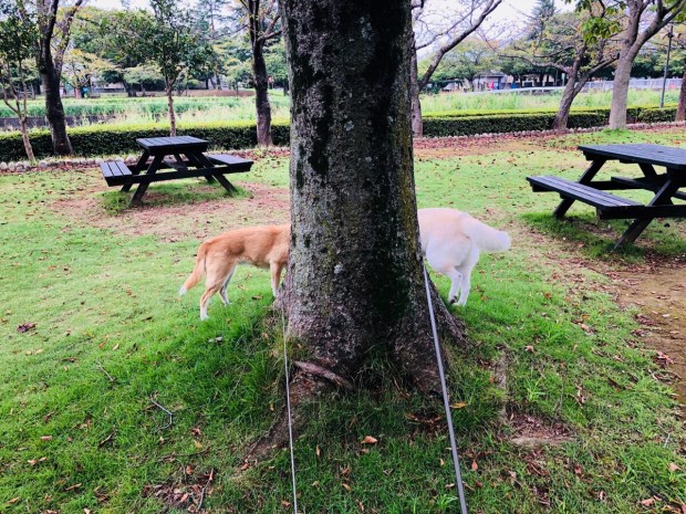 そんな気持ちになっていましたら、2人して 木の向こう側に行きまして、何やら作戦会議を…( ̄+ー ̄)