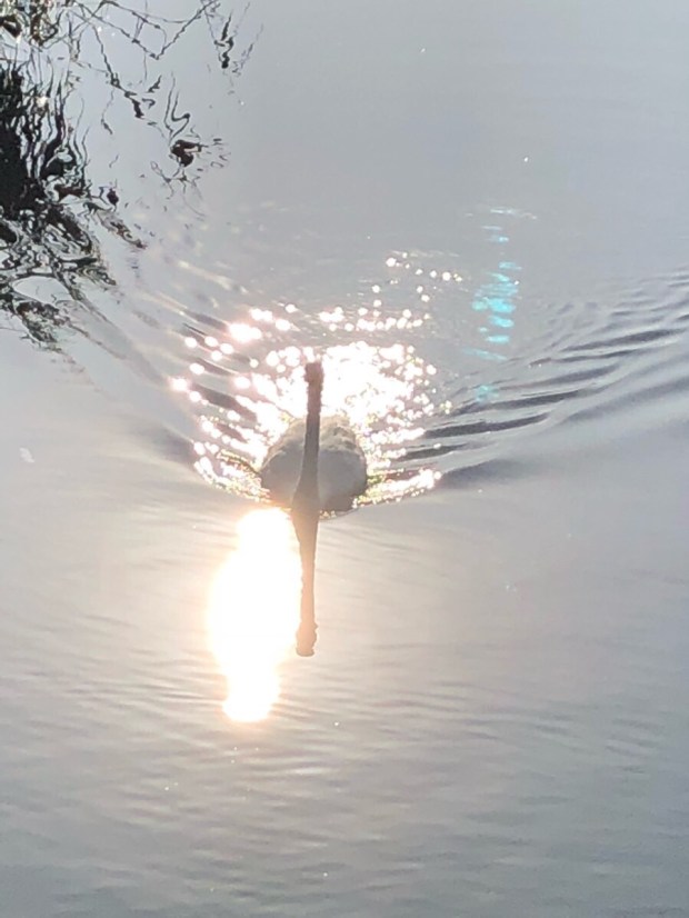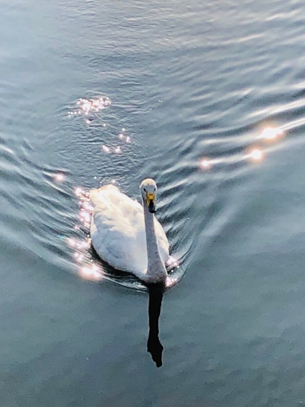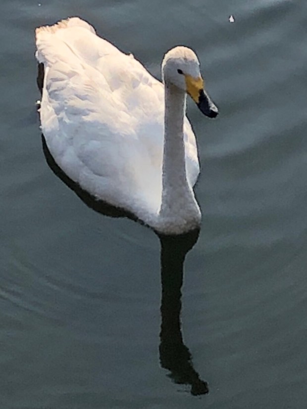 お散歩の帰り道の 鶴生田川に、小さなスワンボート⁉️