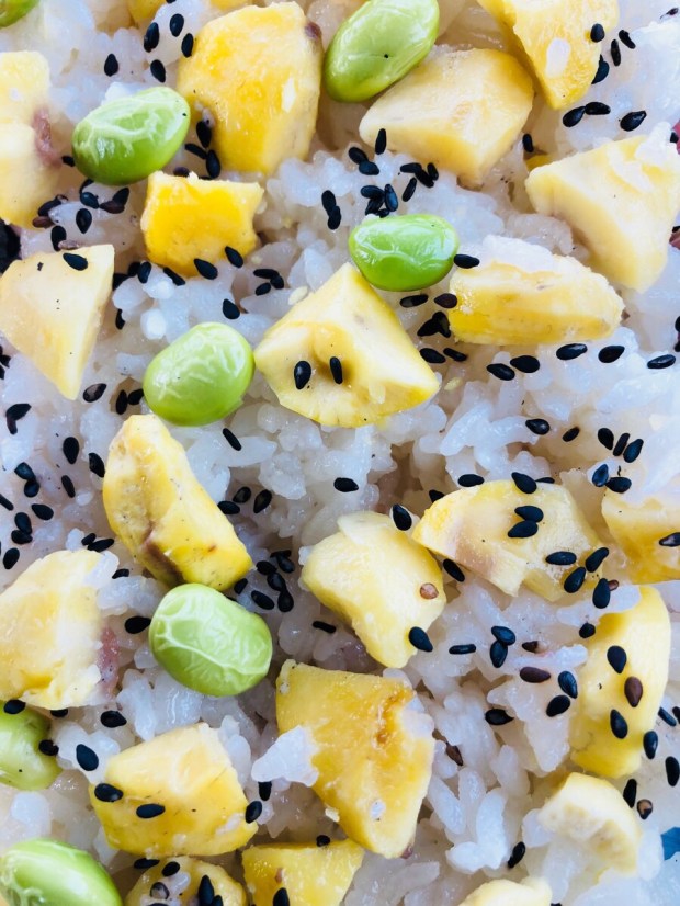 お花と お供えを ぽんぽこで買い込みましたので、一緒に ランチの 栗ご飯を(*^◯^*)