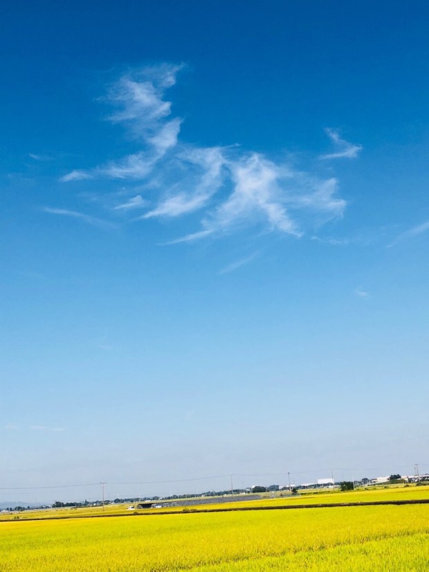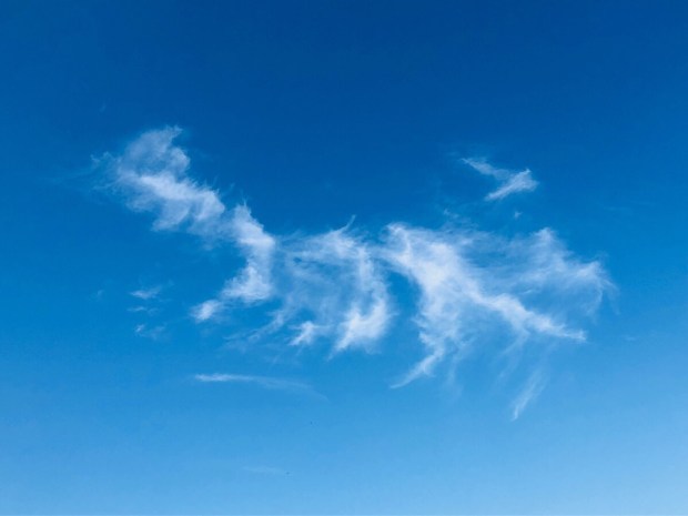 真っ青な 青空に 特徴のある 雲が一つだけ( ´∀`)