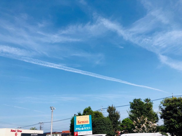お店の方へ到着しますと、西陽と飛行機雲(≧∀≦)