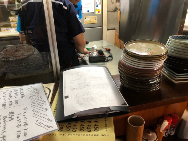 昨日 直りませんでした、コールドテーブルを 本日も直しに業者さんが。