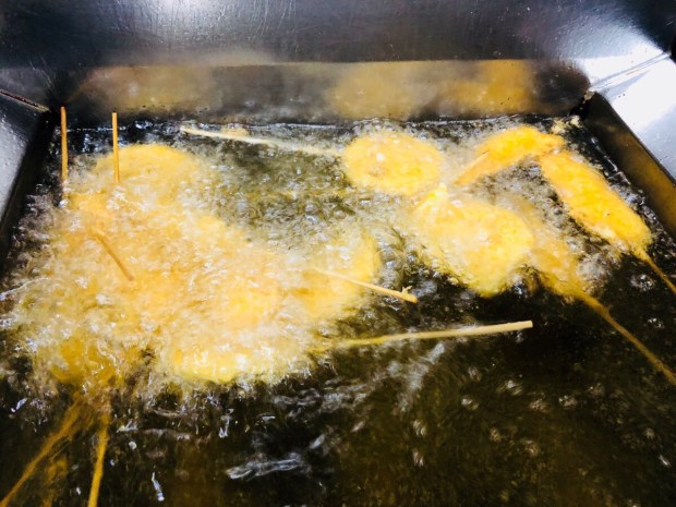 揚げ物にー。