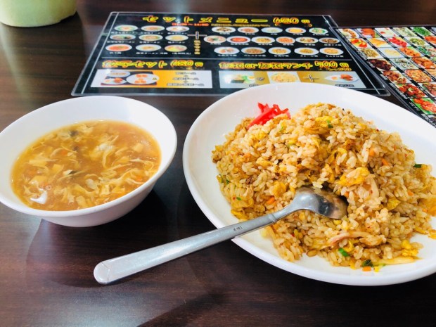 お昼の時間になりまして、土曜日のランチは 四季紅で、キムチ炒飯+唐揚げのワンコインランチ(o^^o)