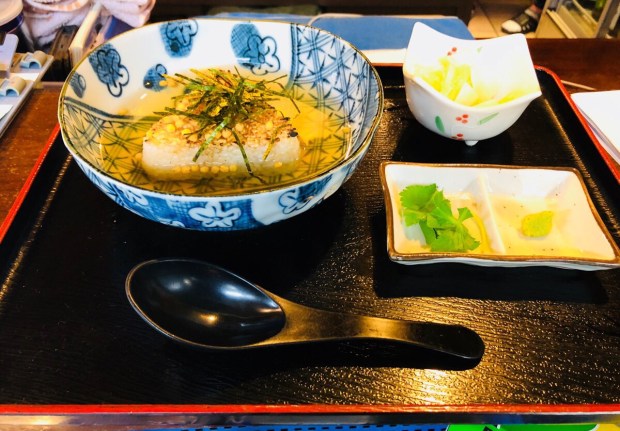 おにぎりを炭火で焼きましての、おにぎり茶漬け。