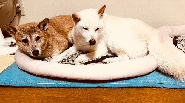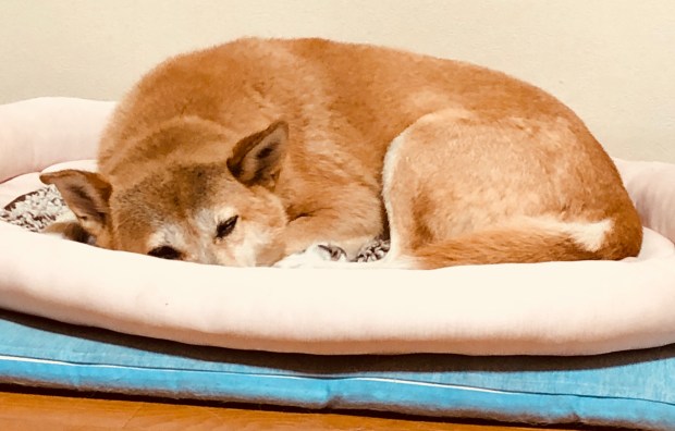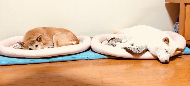 帰りに ちょいと お買い物の寄り道をして 帰宅しますと、寝ぼけながら お帰りなさーいの ヒバ子さんと、爆睡中の お殿様U^ェ^U