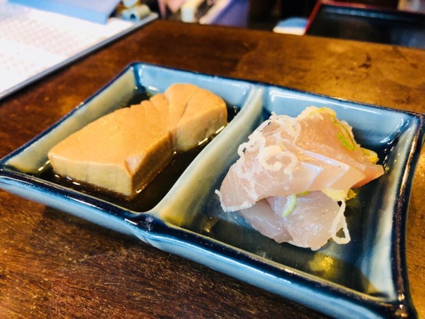 お通しは、本鮪の角煮と おばこサワラの塩ユッケ♪(๑ᴖ◡ᴖ๑)♪