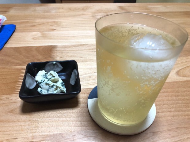北千住で買って来ました、おフランスの ブールーチーズで ウイスキーの炭酸割り🥃