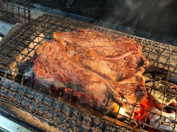 500円ステーキ肉を 炭火で焼きまして\(^ω^)/
