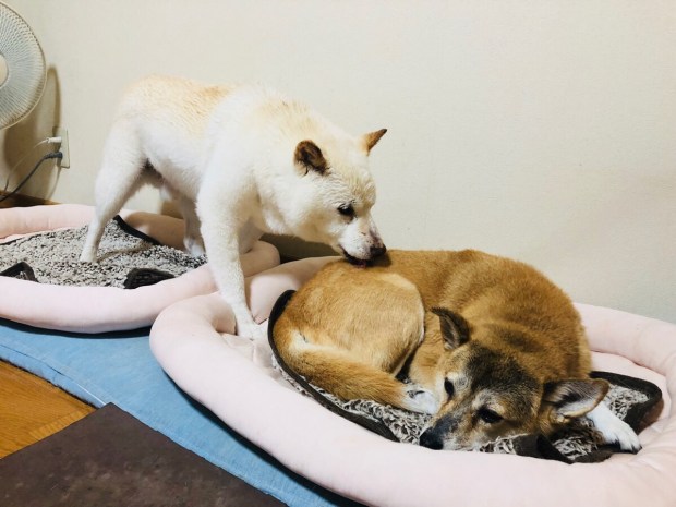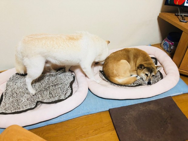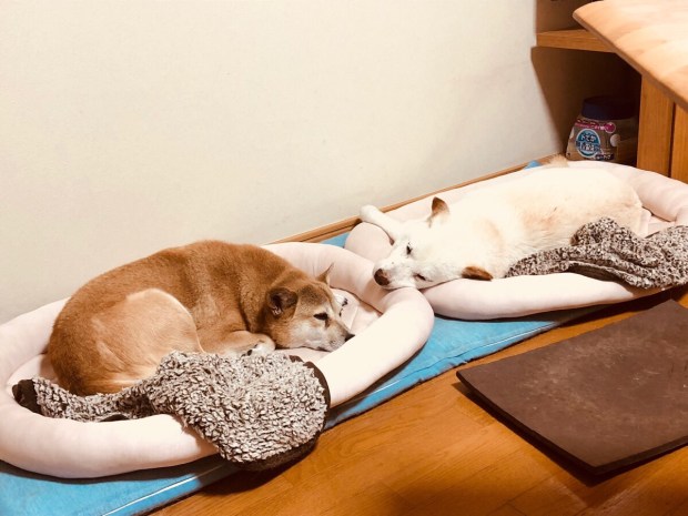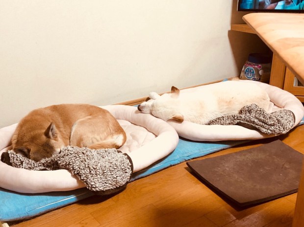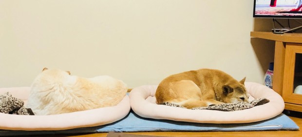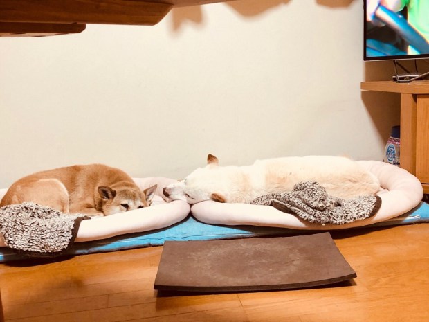 午後の散歩も 早めにしまして、御飯食べたら 2人で グータラf^_^;