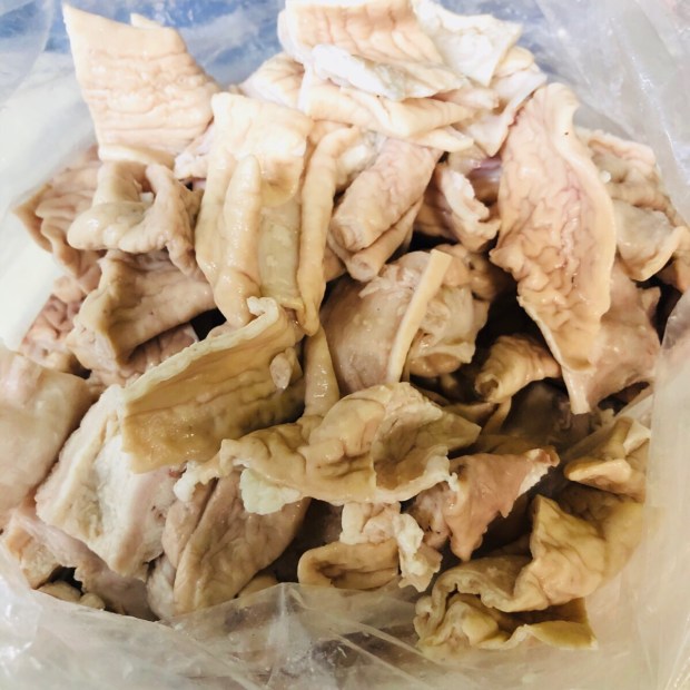 ちなみに、大トロもつ煮用の 豚のテッポウの掃除を。