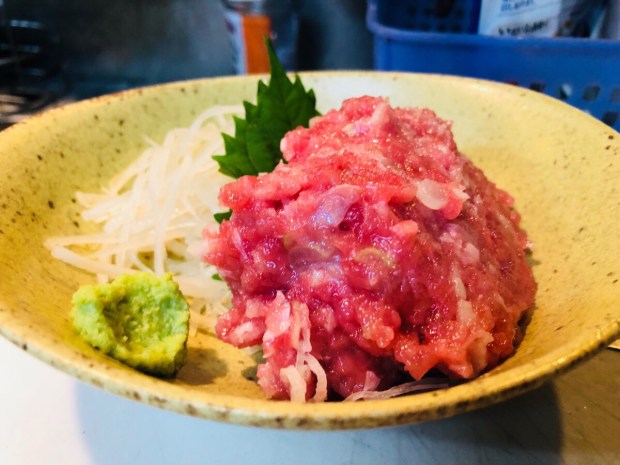 中トロ たたいて作ります、ネギトロ❗️