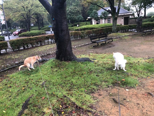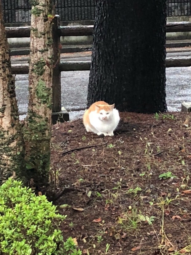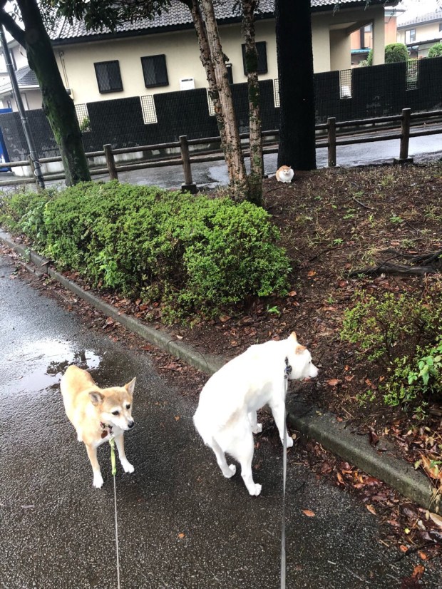 雨宿りしている ニャンコ様に 見送られましての お散歩でしたU^ェ^U