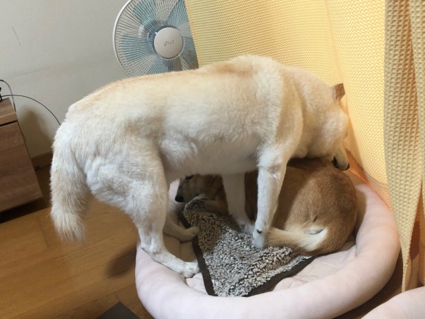 食後ですが、濡れている事を 思い出したのか、お殿様が ヒバ子さんを舐めてくれておりました( ^ω^ )