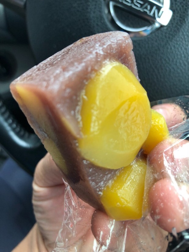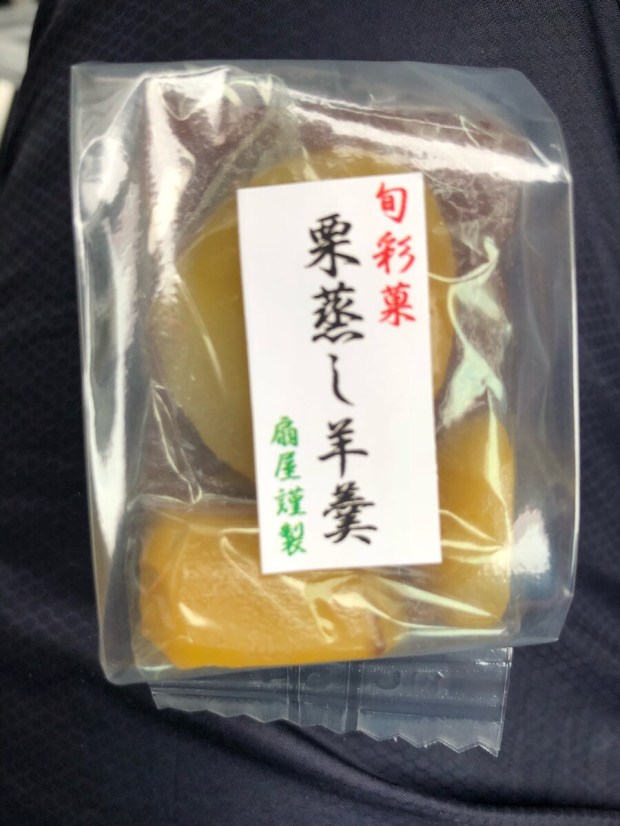 何も買わずに出るのも アレですので、栗蒸し羊羹 始まりましたの ポップに釣られまして、バラをお1つ!