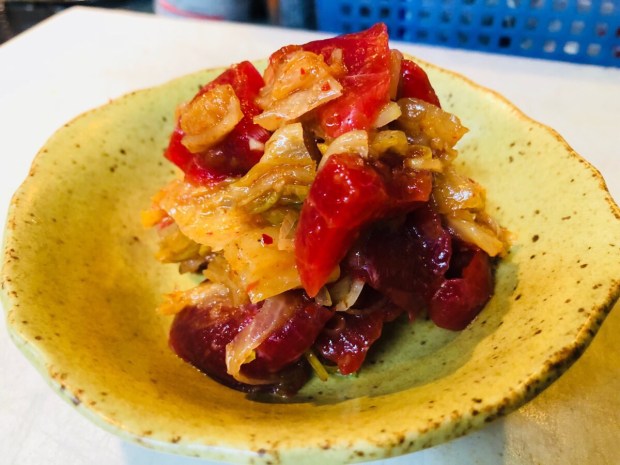 最後に お通しからの昇格メニュー【鮪キムチ】