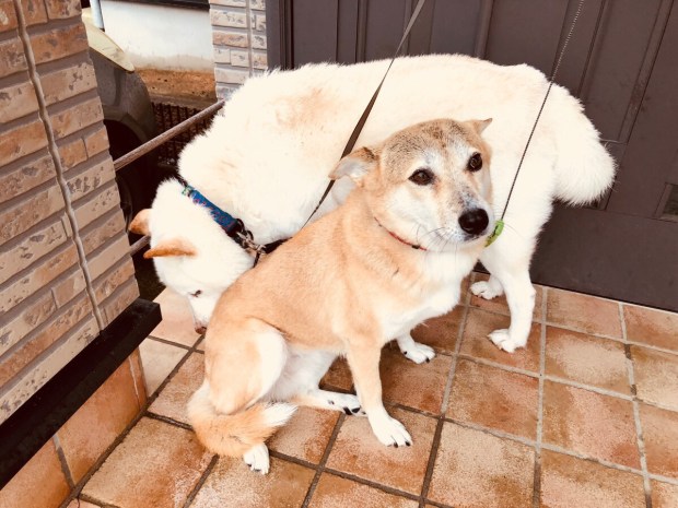 とちうわけで、散歩だ濡れた体を舐めてあげる お殿様です(´∀`)