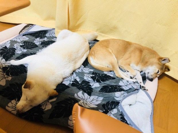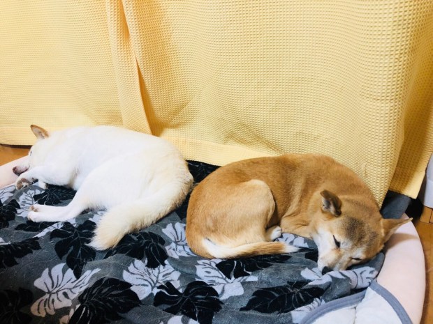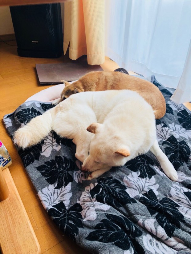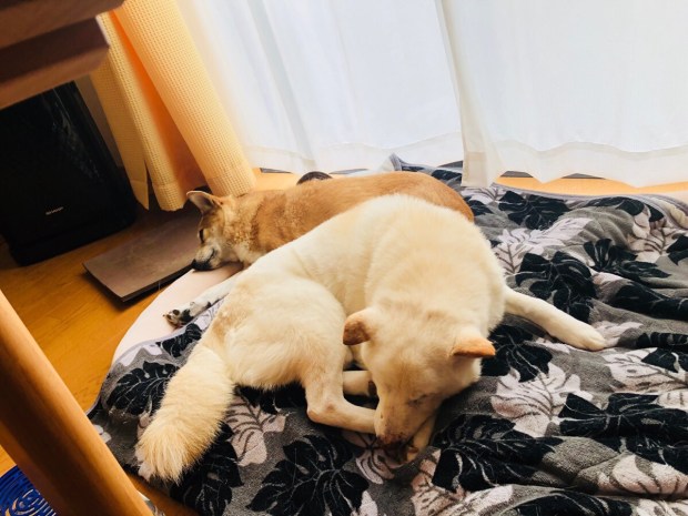 相変わらず、散歩して 御飯食べたら 大人しくなります、お2人さん(*^ω^*)