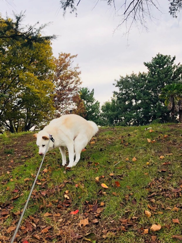 基本は このスタイルで、お殿様が マイペースで 前を歩き、ヒバ子が その後ろをついて行く感じ( ^ω^ )