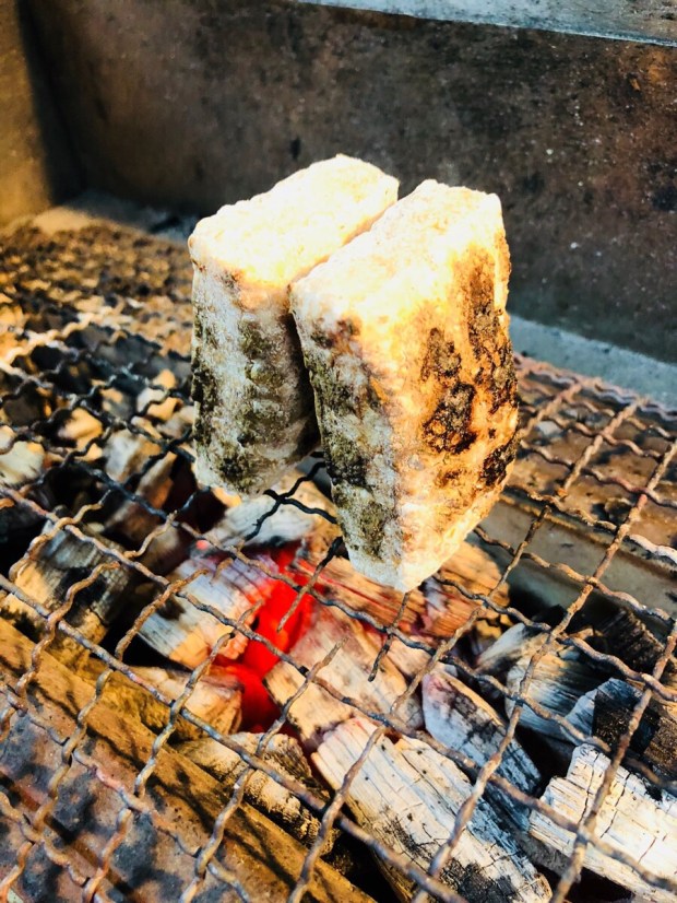 なんか 小腹が空いてしまいましたので、炭火で 玄米餅を焼きまして(o^^o)