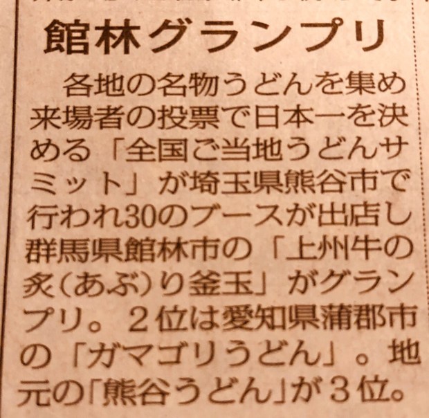 うどんサミット、館林がNo.1でございます❗️