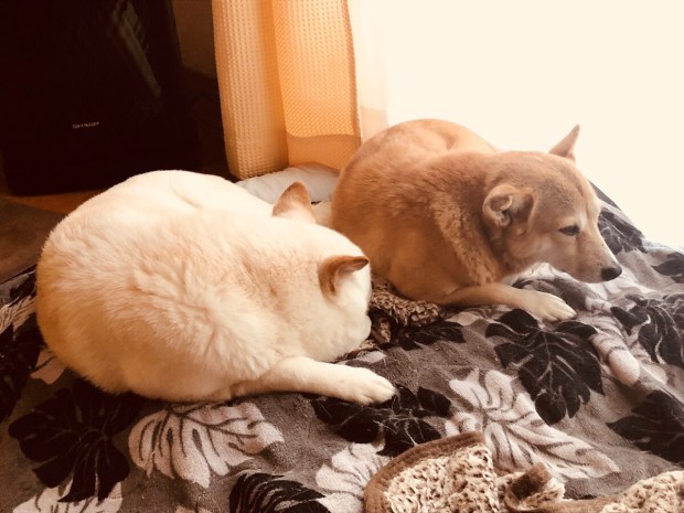 流石に重かったのか、2人で態勢を変えまして、夢の中へzzz…でございました(笑)