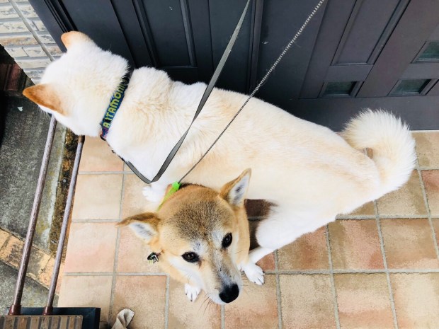 お散歩から帰って来まして、アンヨを拭かれるのを ちゃんと待つ、ヒバ子さん(^^)