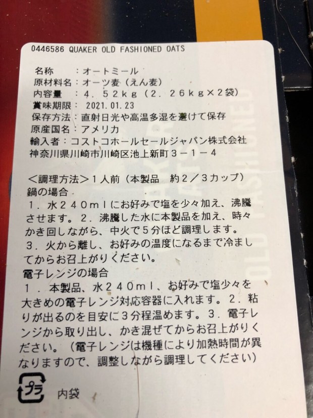 瞬ぴぃの朝御飯、オートミール( ^ω^ )