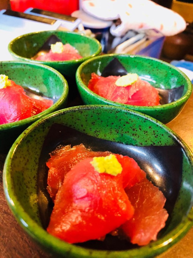 お通しは、天然生メジマグロぶつ╰(*´︶`*)╯