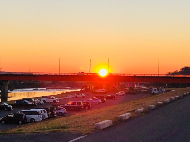 土手沿いのゴミ拾いをしている時に、綺麗な朝陽が╰(*´︶`*)╯