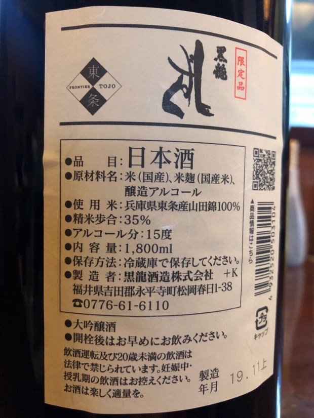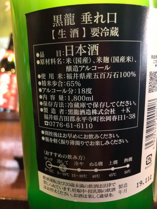 福井県 黒龍 垂れ口 【生酒】
