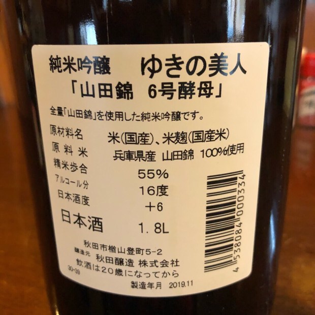 秋田県 ゆきの美人 純米吟醸 山田錦 6号酵母