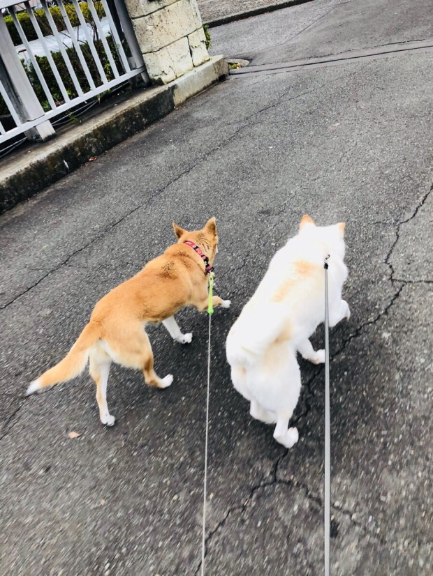土曜日の朝も元気に お散歩から、スタート٩( ᐛ )و