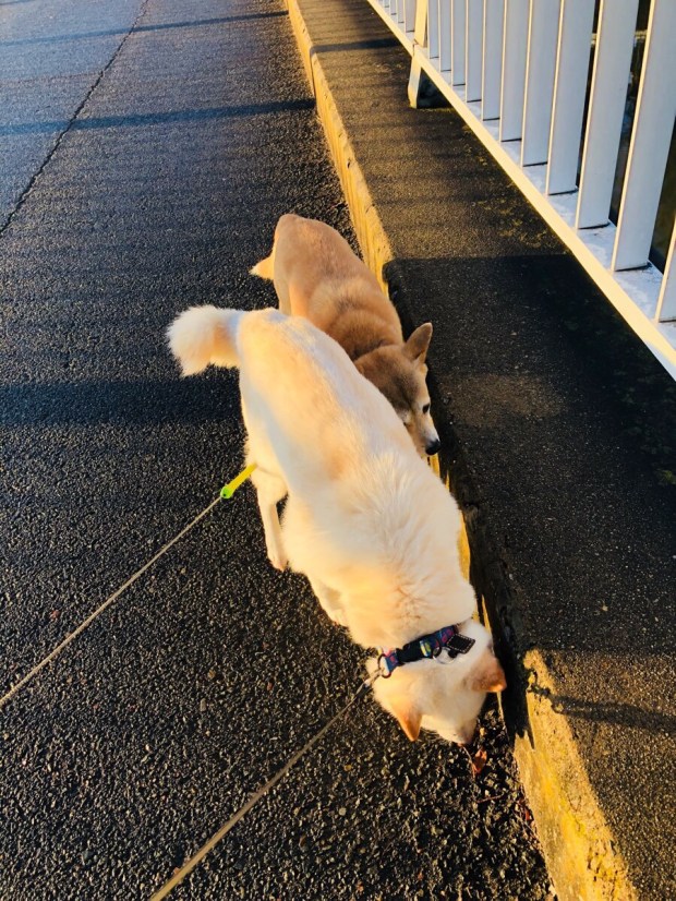 まだ地面が濡れている中、お散歩へ出ましてU^ェ^U