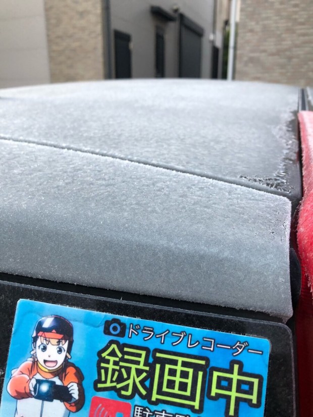 朝 お散歩へ行こうとすると…車がカチコチ(>人<;)