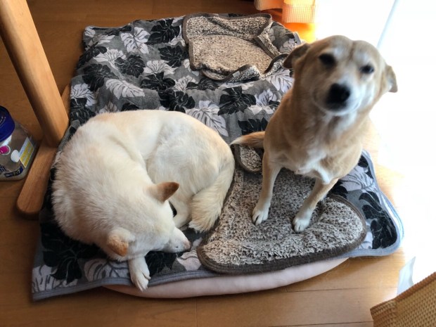 無事に帰宅しますと、爆睡中の お殿様と、しっかり起きて迎えてくれました ヒバ子さん(´∀`=)