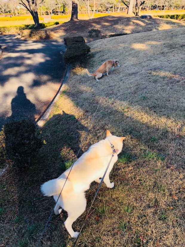 うちの お二人さんは、風には 全く負けませんので、ブレずに いつも通りのシンクロシッコ(爆笑)
