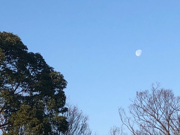 朝の お散歩に出ますと、まだ お月様が しっかり見えておりました(^ω^)